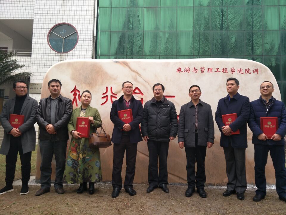(通讯员:丁曦)真情馈母校,师生谱华章。2018年新年的第一天,学院在第二教学楼前坪举行了“知行合一,止于至善”院训石揭幕剪彩仪式。院训石由1997级中英文秘专业李跃勋、张国春、邹祥启、仇雄利、熊繁荣等5名校友捐赠。是日,学院尹华光院长、符铁军书记、吴永江副书记、1997级中英文秘20余名校友及学院在校学生齐襄盛会,见证院训石庄容面世,展示学院师生情谊的华美篇章。本次仪式由吴永江副书记主持。