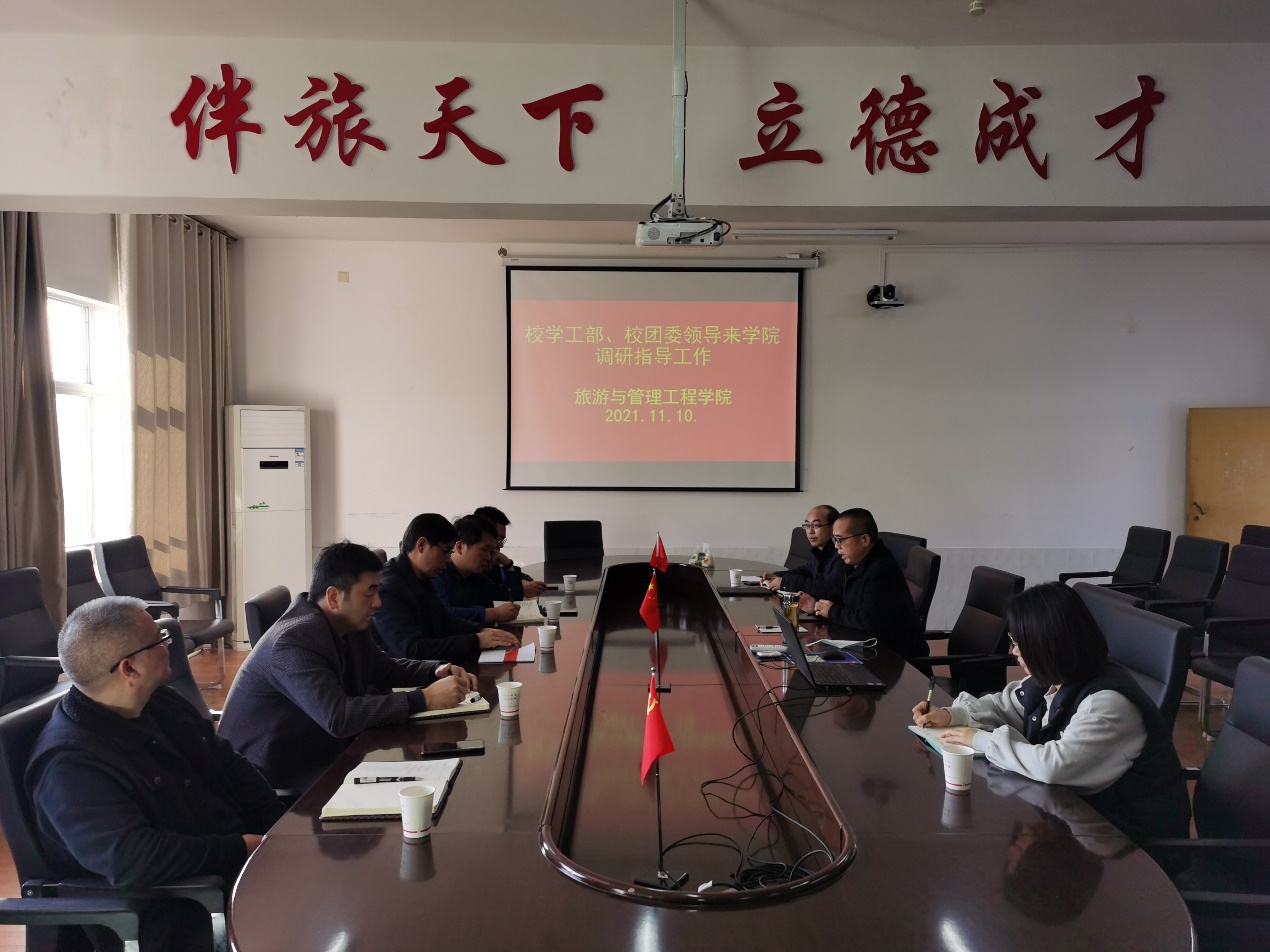 11月10日下午,学校学工部欧阳大文部长、校团委廖浩书记、校招就处向军处长、学工部彭校辉副部长、张家界校区学工办张建喜主任、校区团委谈宗凡副书记一行,前来我院调研指导。学院党委副书记李军、院团委书记赵潞、院学工办主任刘世雄参加了调研座谈会。