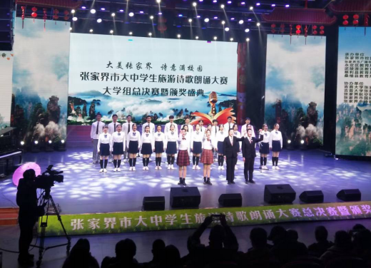 (通讯员:敬蔓玲 李晨 尹佳辉)2020年11月30日晚7点,张家界市大中学生旅游诗歌朗诵大赛总决赛暨颁奖盛典在张家界市演播厅举办,在此次比赛中我院朗诵队获得了二等奖的佳绩。