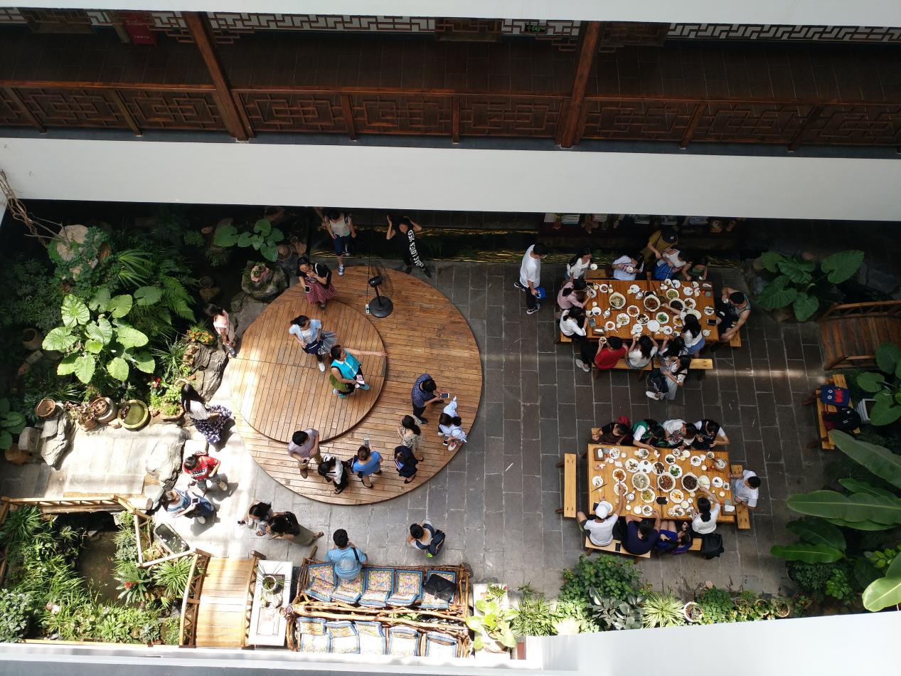 唐院长特邀了加拿大蒙特利尔大学留学生唐嘉诚、镜立方玻璃房客栈老总龙武助阵。在观山悦客栈顶楼花园中讲关于客栈课,环境新奇、场面热烈、观点怦发、妙语连珠,极大调动和勾起了学生对新型客栈业态的兴趣。