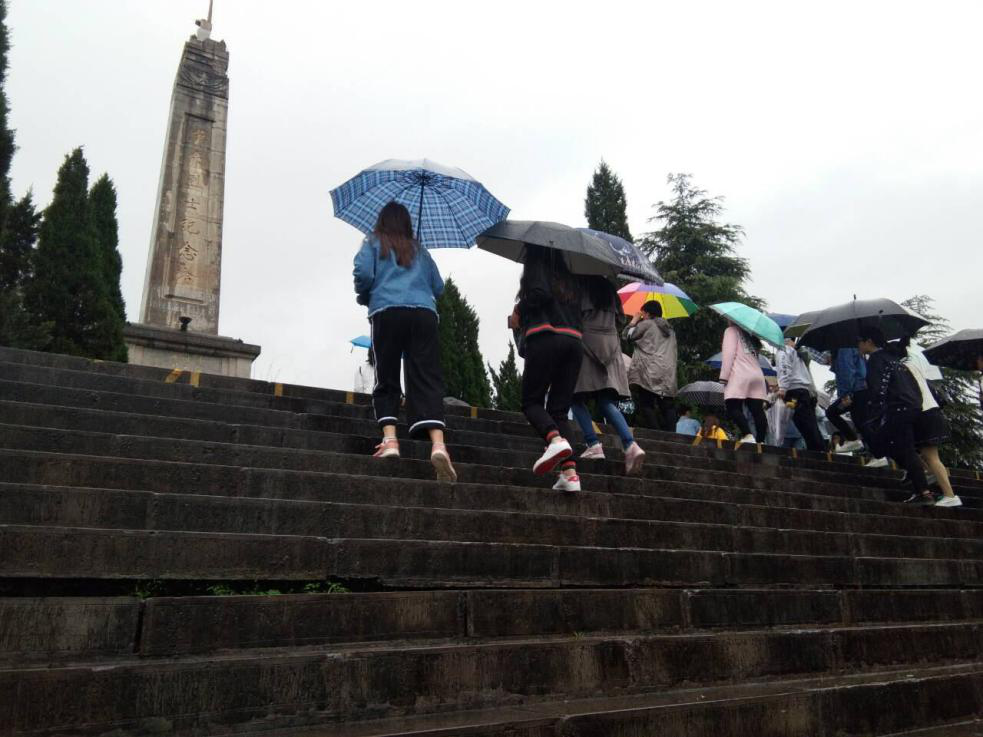 活动第五项,志愿者们抬头仰望烈士纪念塔,进行振奋人心的宣誓。