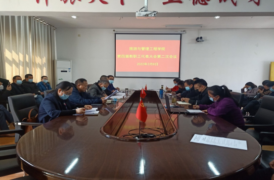 3月8日下午,学院第四届教职工代表大会第二次会议在第二教学楼会议室召开。校领导罗金铭及全院教职工出席本次大会,会议由学院分工会副主席李彦莉主持。大会在雄壮的国歌声中开幕。