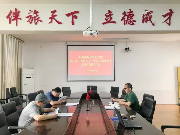 为深入贯彻落实习近平总书记关于教育的重要论述,提高学生创新意识和创业能力,2022年6月2日下午3:00,我院在2402会议室举办了旅游与管理工程学院第八届“互联网+”大学生创新创业大赛初赛评审会,学院党委副书记李军,学院副院长董坚峰,院长助理蔡建刚担任评委。
