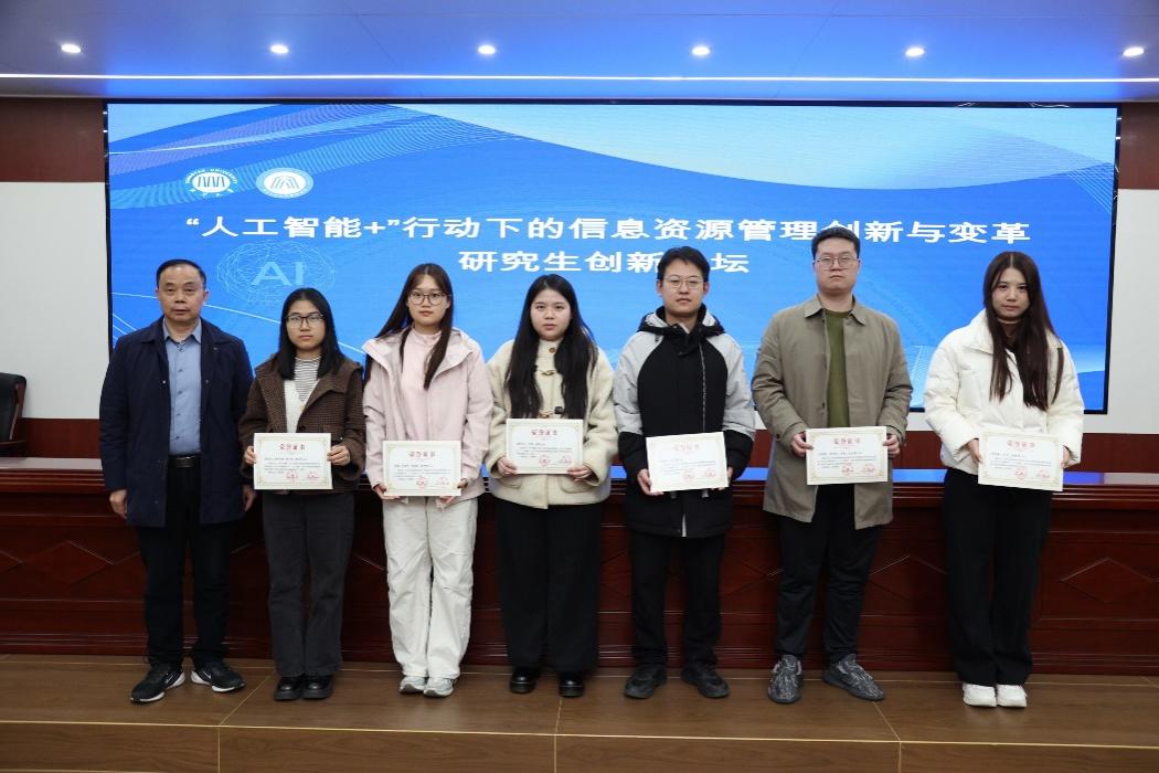 2025年12月6日,由湘潭大学主办的“‘人工智能+’行动下的信息资源管理创新与变革”研究生创新论坛在湘潭大学公共管理学院顺利召开。学院副院长、MLIS主任董坚峰教授带领研究生陈娇霞、李文洁参会,研究生团队提交的学术成果在论坛中脱颖而出,一举斩获一等奖1项、三等奖2项。