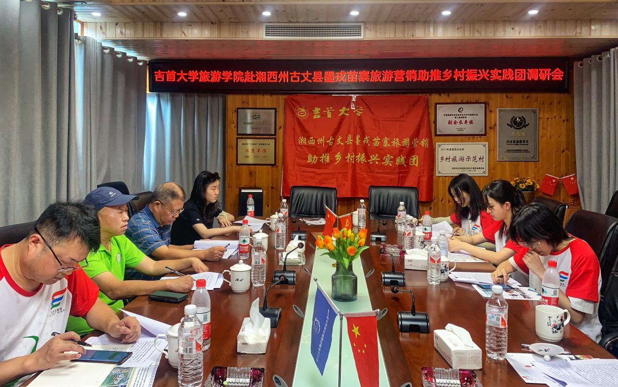 在墨戎苗寨景区,实践团与湘西墨戎苗寨乡村旅游有限责任公司进行密切座谈与交流探讨。
