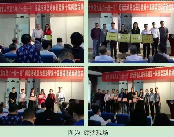2021年4月至12月,williamhill中国图书馆牵头联合相关职能部门和各学院精心组织开展了第九届“一校一书——经典、精读、经世”。活动以“经典悦读·民族繁荣”暨“庆祝建党100周年”红色文化展演为主题,涵盖了好书推荐、读书征文、评奖表彰3个阶段,来自全校20个学院的1万余名师生参加了本次活动。学院袁杰萍等3名研究生及多名本科生在本次活动中获奖。